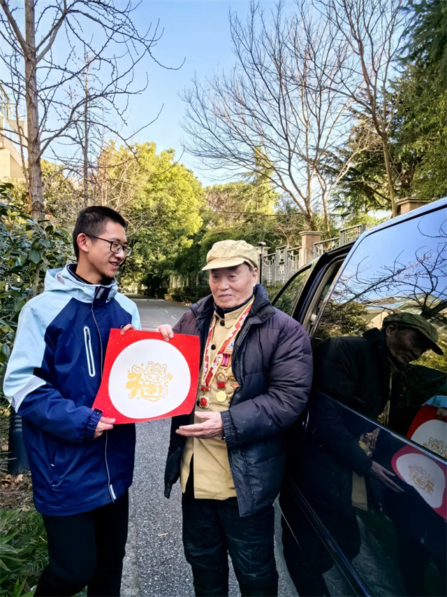 高二18班王宇轩给彭爷爷送新年礼物
